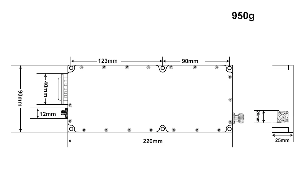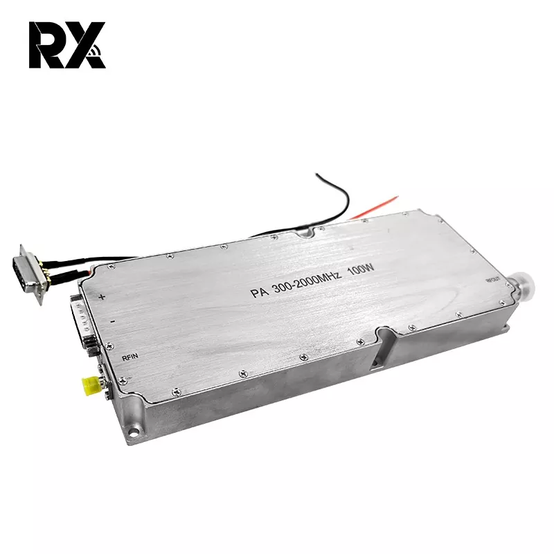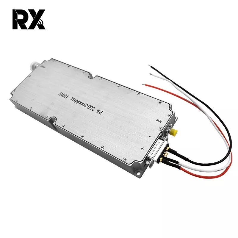 100W RF Power Amplifier Module er en høyeffektsforsterkermodul designet spesielt for profesjonelle RF-systemer. Den dekker et ultrabredt driftsfrekvensbånd på 300-2000MHz, og den kan støtte 32V DC-strømforsyning, og har en nominell driftsstrøm på 8A. 100W RF Power Amplifier Module 300-2000MHz 32V 8A High Gain kan effektivt løse strømproblemet i RF-signaloverføring og er mye brukt i trådløs kommunikasjon, RF-testing, industriell kontroll og andre felt.