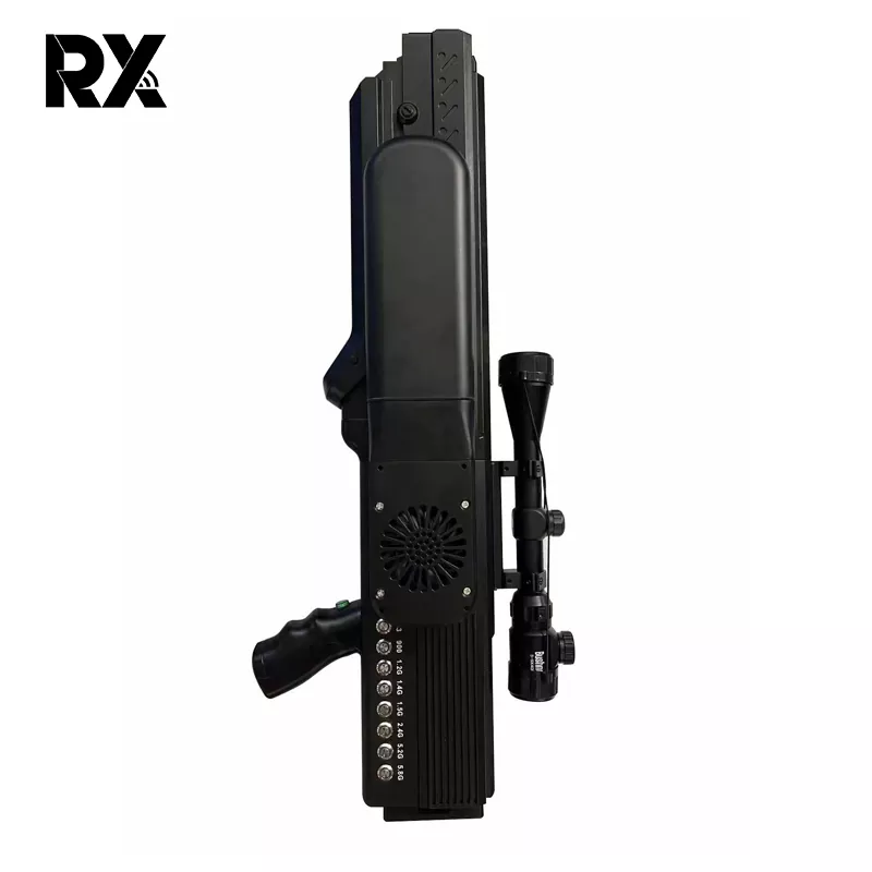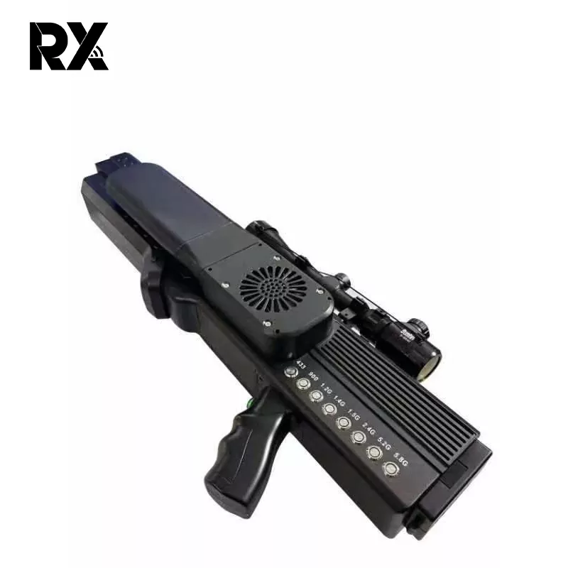 Denne Rongxin 8-kanals langdistanse drone-jammeren er den siste oppfinnelsen av høy kvalitet og kommer med 1 års garanti. Denne effektive dronejammerpistolen kan tvinge dronen til å returnere hjem eller lande i omtrent 1000–1500 meter ved å forstyrre fjernkontrollsignalet mellom dronen og bakken.