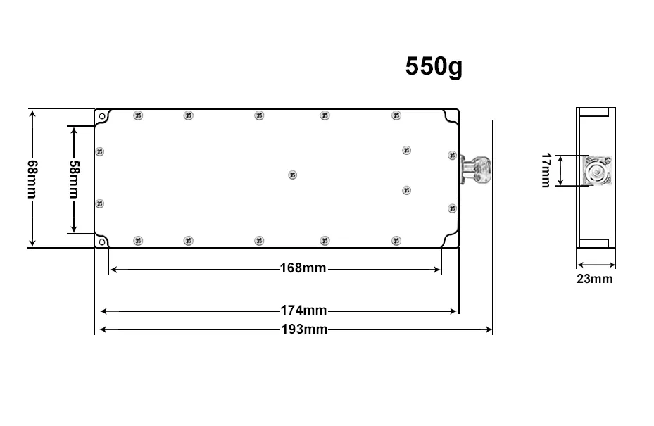 Utseendet til denne GaN 100W digital kildesignalforsterkermodulen med sirkelbeskyttelse er laget av aluminium, med ringbeskyttelsesfunksjonen kan den beskytte modulen og omkringliggende kretser under unormale forhold som overstrøm, overspenning, overoppheting, etc., og sikrer stabil drift av systemet og forlenger levetiden. Denne modulen bruker vanlige RF-kontakter som SMA og N-type, som er praktisk for å koble til andre RF-enheter.