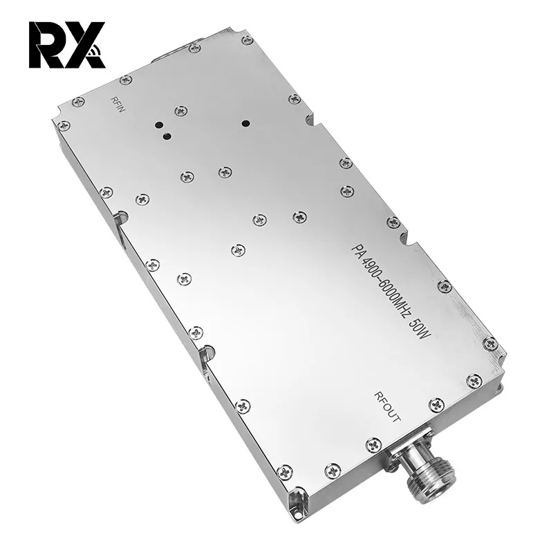 Ultra Band WiFi 5G Signal Jammer Power Amplifier 50W er en høyytelses RF effektforsterkermodul designet for høyfrekvent signaljamming og skjerming. Modulen dekker ultrabredbåndsfrekvensområdet og er kompatibel med WiFi 6, 5G-kommunikasjon og andre høyfrekvente trådløse signaler. Den er egnet for behov for signalskjerming i spesielle scenarier. Kvaliteten på modulene produsert av RX er garantert. Vi kan se at RXs produkter spiller en viktig rolle på både militære og sivile felt.
